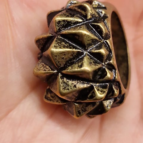 Ikke edelt metall, men fint laget med perler, perlemor og stener. Ikke gull.