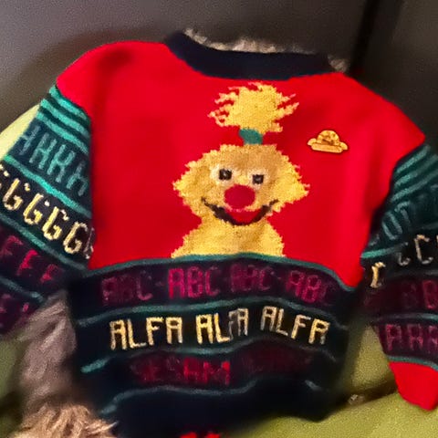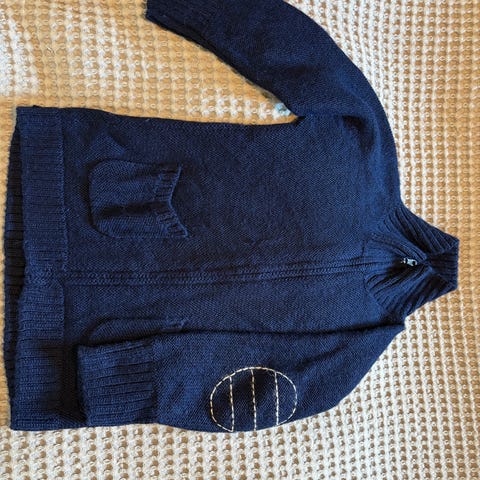 Herlig samleobjekt fra 1992 💫 I blått og hvitt, 100% ull. Står strl 4, men har målt med en ullgenser fra Hust and Claire i strl 116 og den er cirka lik på målene. Vil derfor si at genseren passer 4-6 år. Ingen hull eller skader