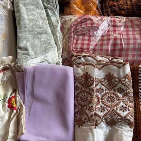 De er kjøpt brukt men ikke hengt de opp her enda. Jeg har snudd helt fra å ville ha det moderne som alle har... Til å bli helt hekta på det flotte fra de forskjellige tider som passer godt sammen. Og dette stoffet er nydelig til mange epoker