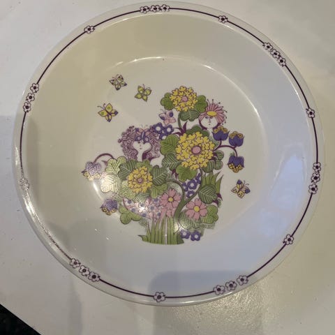 Tallerken 26 cm produsert av Figgjo Flint, med det populære "Victoria"-mønsteret, designet av Turi Gramstad Oliver. I fin stand. Kan sende.