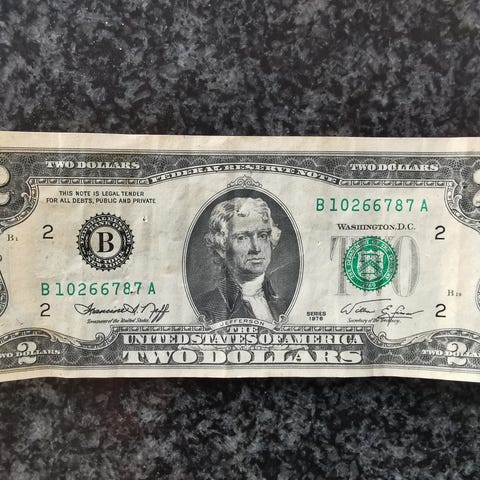 3x Nummerrekkefølge Usirkulert USA 2 Dollar med frakt