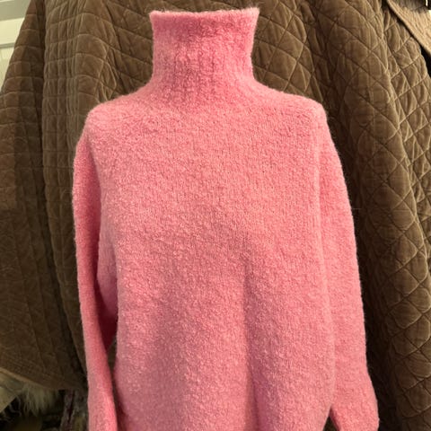 Nydelig Kortermet strikket genser i alpakkaull med høy krage. Genseren er i fin kamelbrun farge 🤎 og har oversized passform. Den har myk kvalitet og ribbestrikk ved ermeslutten og i nedre kant.