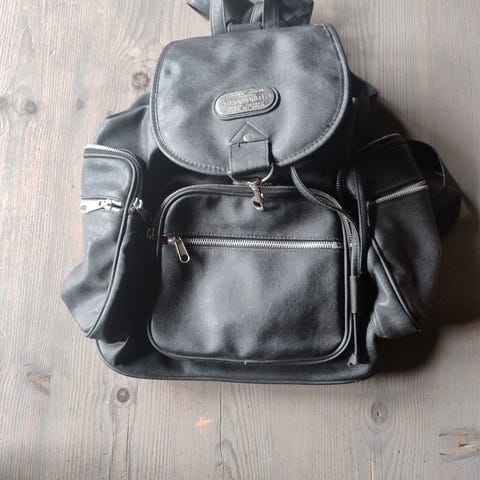 Sekk i lær . Selges .