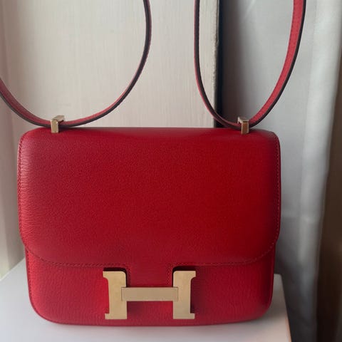 Hermès Constance i svart med sølv hardware. . Vesken har en avlang form med en justerbar skulderrem. Innsiden inneholder flere rom.