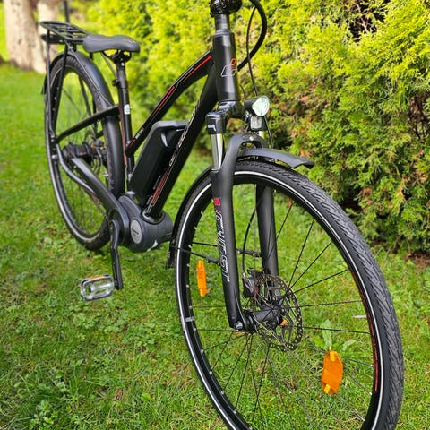 Elektrisk lastesykkel for unisex bruk. Sykkelen har en stor kasse foran for transport av varer eller passasjerer. Designet for praktisk og effektiv transport.