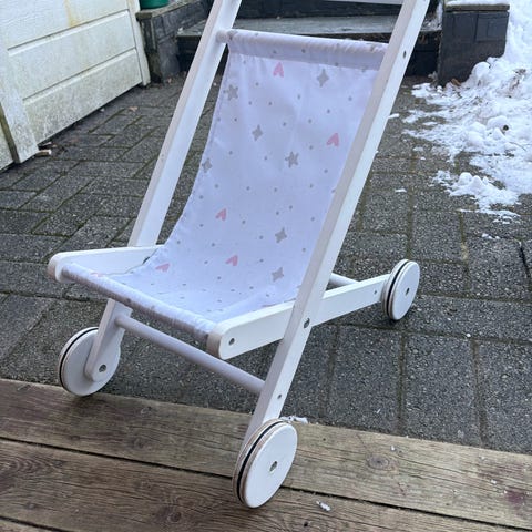 Rød dukkevogn med vognpose