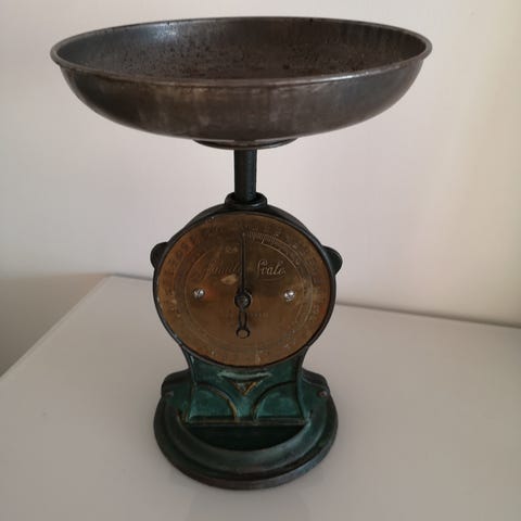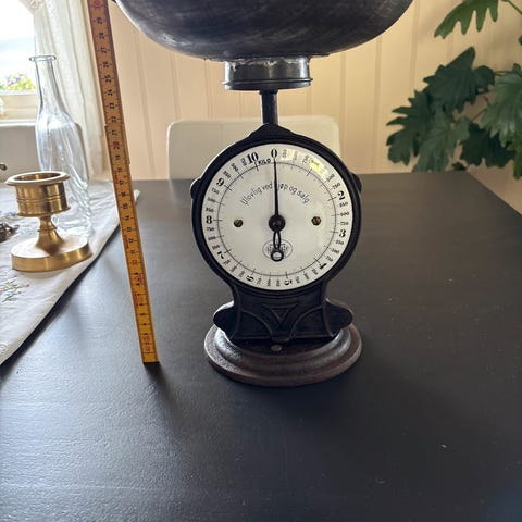 Salters vekt med kjempefin patina mangler fatet på toppen.