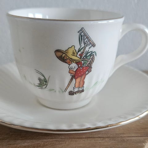 Arabia Mummikopp 3dl «Snø i måneskinn» med etikett - Vinterkoppen 2021 selges.
