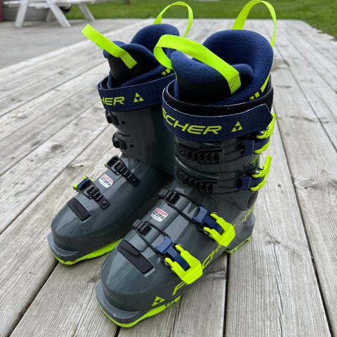 Fischer skistøvler for ungdom størrelse 255. Støvlene er svarte med gule detaljer og har en ytre skallkonstruksjon med spenner for justering. Innersko følger med for ekstra komfort og isolasjon. Sålen har gummibelagt underside for bedre grep.