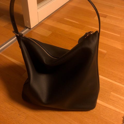 Nydelig orginal A.P.C. dameveske laget av lær i svart farge. Vesken har en justerbar skulderrem og to separate rom med glidelås. Designet for daglig bruk og passer til ulike anledninger. Selges pga feilkjøpt julegave med utgått returfrist.