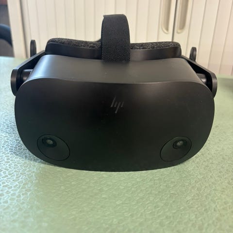 HP Reverb G2 VR-headset med kontroller. Headsettet har justerbar hodebøyle og innebygde hodetelefoner. Komplett med kabler, USB-adapter og to kontrollere. Passer for VR-opplevelser og simuleringer. Virker ikke med WMR etter Windows 24H2 patch. Virker med windows før denne versjonen, samt at den virker med Steam spill. (Windows Mixed Reality ble tatt bort fra Windows etter 24H2 patch)