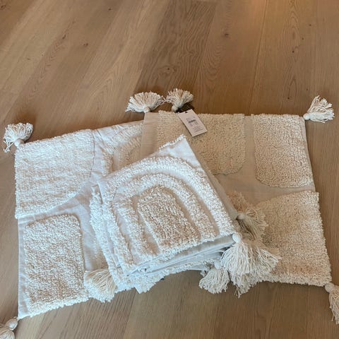 2 stk putetrekk fra KID Interiør, selges samlet for kr 200, ny pris kr 600,-. Lin, farge: sort, beige og gull.
