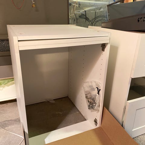 Lengde på skap ved komfyr er 311cm. Vindus skap 130cm . Matskapet i slutten 64cm høyde ca 234cm