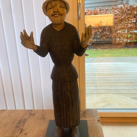 Figurene hans ble produsert i et visst antall, men de har i dag en nostalgisk verdi for samlere av skandinavisk keramikk. ( denne er av tung gips)
