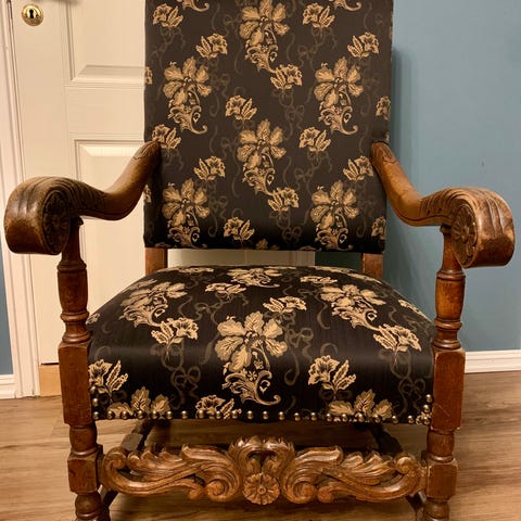 Antikk stol med utskåret rygg