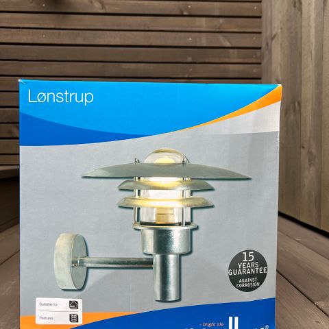 Lampe i rustfritt stål. Til utendørs bruk. 2 stk, nye i uåpnet emballasje. Kr. 300,- selges samlet eller hver for seg.
