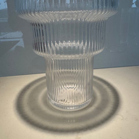 Bolia glass vase with ribbed design. Transparent color and round shape. Suitable for decorative use.