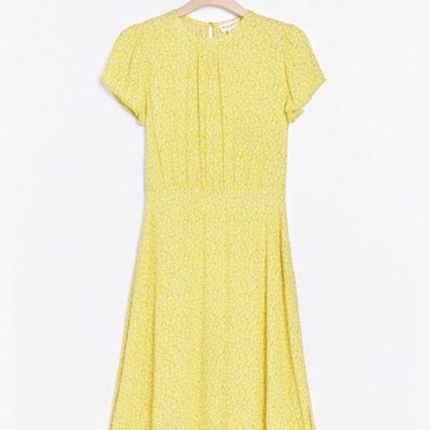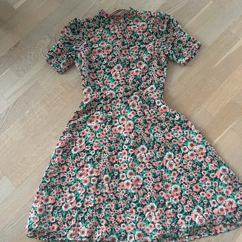 Søt sommerkjole med puffermer og pene detaljer i kragen. Opplever den som litt liten i størrelsen, slik at den passer fint til en 36.