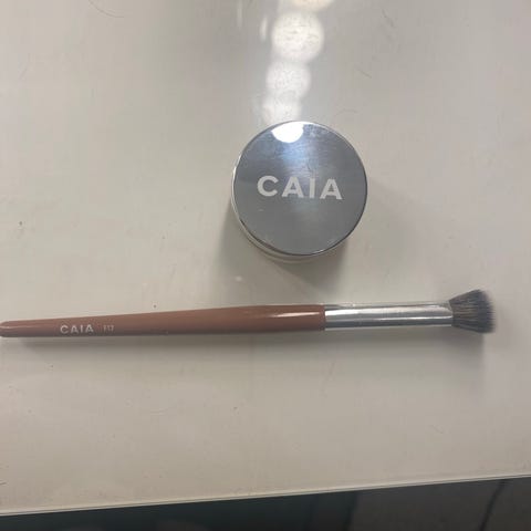 Øyenbrynsblyant, Caia precision brow - farge taupe. Bare prøvd 5mm på hånden, men fargen ble for lys. Følger med en Caia wake me up cream - light to medium. Denne er brukt tre ganger..