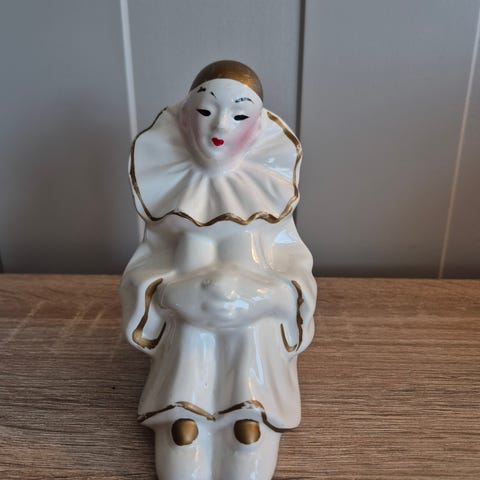Pierrot figue. Liggende harlequin / klovn. Gull og hvit.