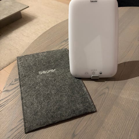 Beurer TL 85 Lysterapi lampe i hvit farge. Lampen er designet for dagslysterapi og har et bredt lysutslipp for å simulere naturlig dagslys. Den har en kompakt og moderne design med justerbar støtte for enkel plassering. Egnet for bruk i hjemmet for å bidra til å motvirke sesongbasert stemningsendring.
