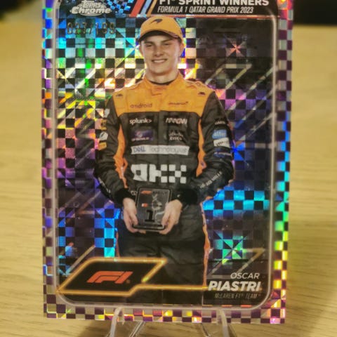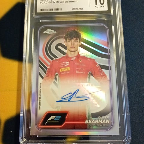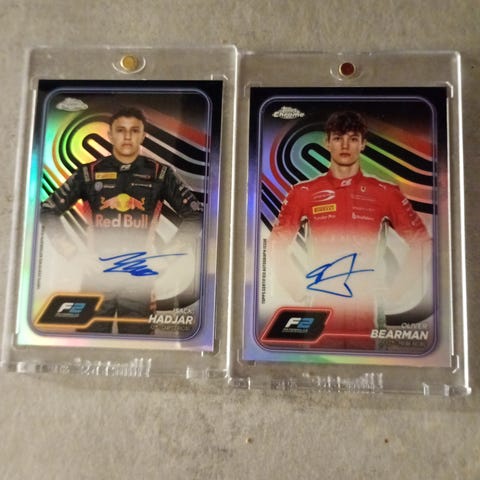 Selger mitt nydelige Oliver Bearman Formula 1 signert kort, som kommer fra Topps Chrome