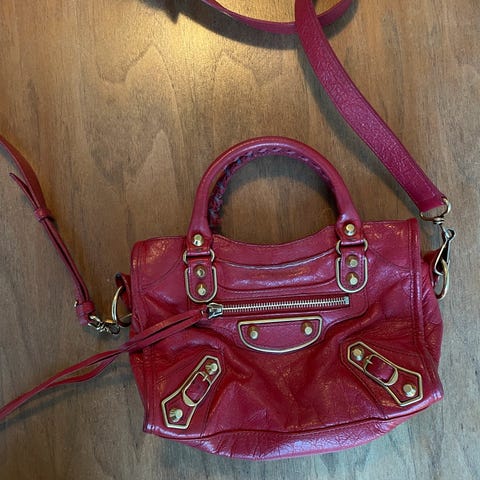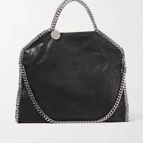 Vesken har en firkantet form med en dekorativ kjede rundt kantene. Den har en rund metallanheng med Stella McCartney logo. Leveres med original pose og dokumentasjon.
