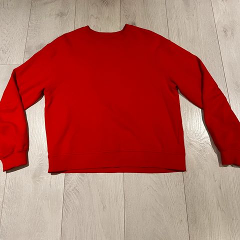 Genser i knall rødaktig farge med puffermer.