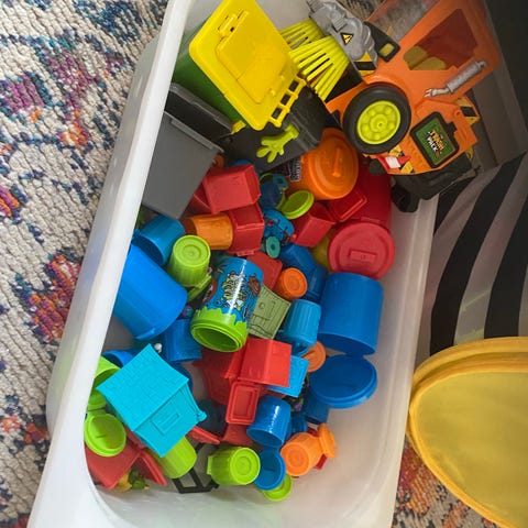 • 6-piece set including 1 recycling tuck, 2 figures, and 3 recycling bins