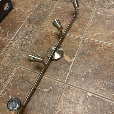 Fin lampe med 5 spotter. Lampen er dimbar. Nedmontert og klar for sending!