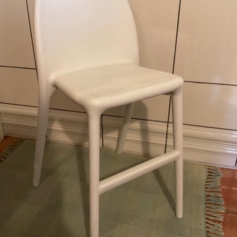 IKEA barnestol og bord i hvit farge. Møblene er designet for barn, laget i tremateriale med enkel og funksjonell design. Passer for bruk i barnerom eller lekeområder. Noen bruksmerker, ellers helt og fint.