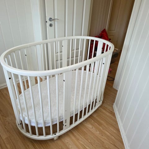 🤍 kvitt stellebord på hjul (m/lås). Ei skuff og to "hyller". Den er godt avflassa oppe på ve.side sett forfra - då den har stått nær vask. Det er også noke merker i skuffa- truleg etter babyolje. Ellers bruksmerker, men fungere som den skal.
