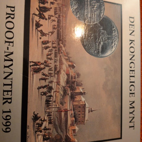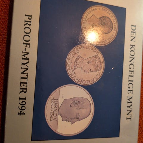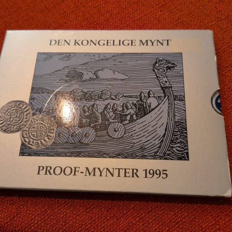 Den Kongelige Mynt Proof-mynter fra 1997. Inkluderer et sett med norske mynter i proof-kvalitet, presentert i original emballasje med detaljert informasjon om hver mynt.