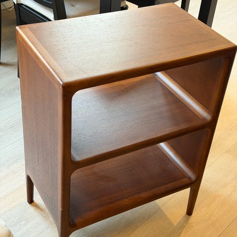 kommode, liten kommode, nattbord, sidebord, hylle, bord, 1950, 50-tall, vintage, retro, heltre, tre, restaurering, restaureringsprosjekt, oppussing, DIY, prosjekt, antikk, gammelt møbel, to skuffer, skuffer, oppbevaring, møbel, interiør, soverom, gang, inngangsparti, shabby chic, gjenbruk, upcycling, håndverk, møbelrestaurering, patina, klassisk, skandinavisk, nordisk, Art Deco, funkis, modernisme, Gilbert Rohde, Herman Miller-stil, midcentury modern, MCM, design, restaureringsprosjekt, 1950-tallet, restaurering, kommoder, nattbord