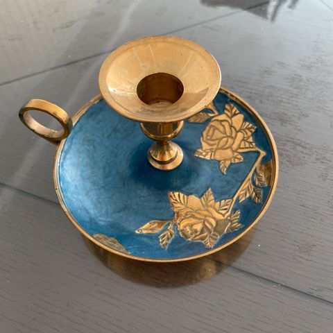 4 armet messinglysestake til å henge i taket. Kjettingen er ca 80 cm lengde