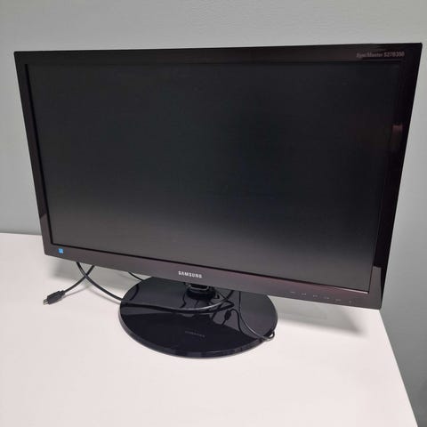 Samsung C27F390 buet skjerm med 27 tommer skjermstørrelse. Skjermen har en buet design for forbedret visningsopplevelse. Tilkoblingsmuligheter inkluderer HDMI. Skjermen er svart og laget av plastmateriale.
