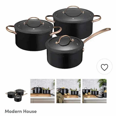 Selger 1 stk. 3 liter og 1 stk. 1,5 liter gryte fra Modern House, av typen Black Copper.