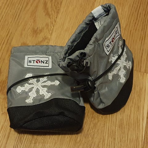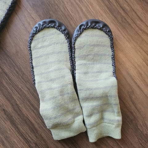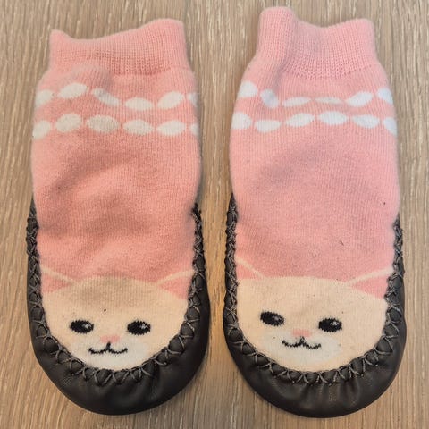 • Par 2 (følger med gratis): Brukt kun én gang i barnehagen. Det ble satt på navnelapp, og etter at den ble fjernet er det et lite merke igjen. Barnet nektet å bruke sokker og tøfler i barnehagen, så de ble aldri tatt i bruk og er så godt som nye.