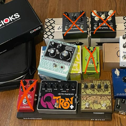 Selger unna litt diverse pedaler og tilbehør ettersom jeg har kjøpt en digital effekt enhet og trives med den. Alle pedalene er i meget god stand, untatt wah pedalen som har litt slitasje.