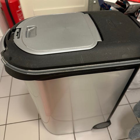Selger en veldig fin oppbevaringsboks til eks hundemat. Denne er luftet og med pakning rundt begge åpninger så her holder maten seg fin lenge.