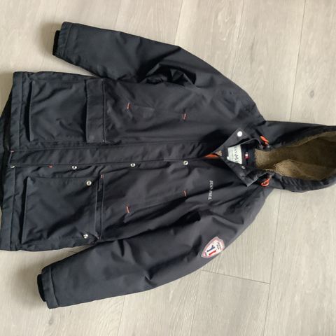 Jean Paul ytterjakke / parkas / vinterjakke for kvinner i størrelse M. Jakken er brun og laget av polyester. Store lommer. Ingen skader. Reflekser på armene som man kan velge å snu ut eller inn.