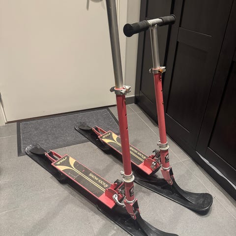 Selger to stk morsomme snøsparkesykler.