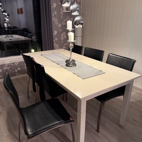 Bord med 4 stoler . Stolene er forskjellige .Gis bort pga flytting.