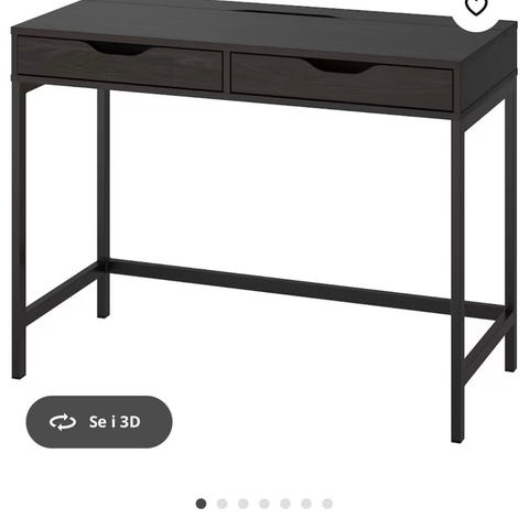 Skrivebordet fremstår som elegant og praktisk - er i god stand, uten synlig slitasje.