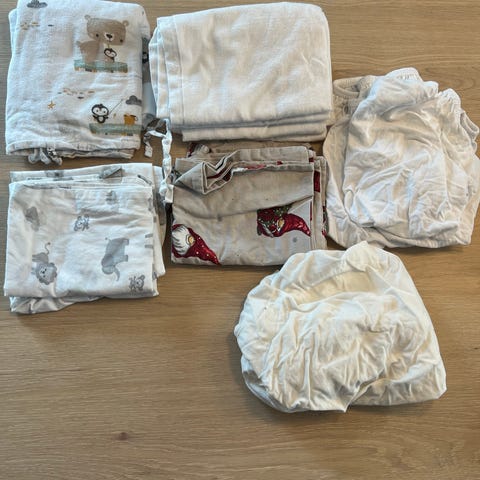 Sengetøy + 3 laken til vogn / vugge. Laken strl 40x80. Selges for 200 kr