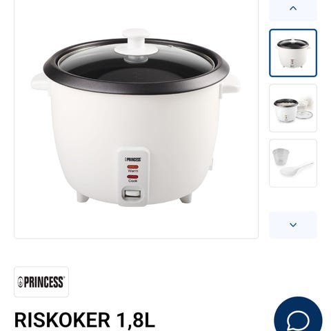 Princess riskoker med avtakbar innerskål i og glasslokk. Inkluderer strømledning. Funker fint, selges fordi den ble for stor. Kjelen har noen slitemerker på undersiden.