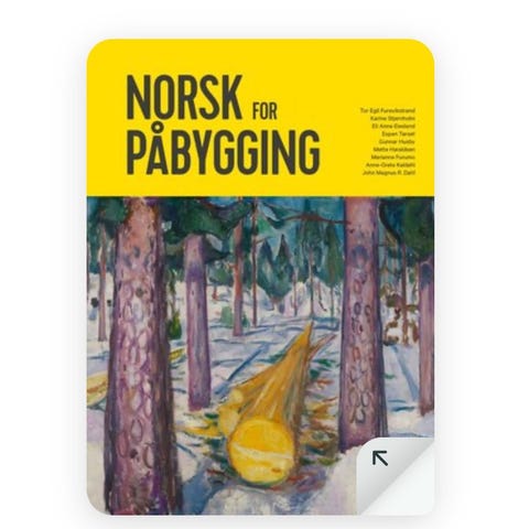 Selger min Norsk for påbygging bok, kjøpt ny i februar 2025. En side er det brett på (se bilde) som mest sannsynlig kommer fra trykkfeil, men det har ikke hatt noe betydning!