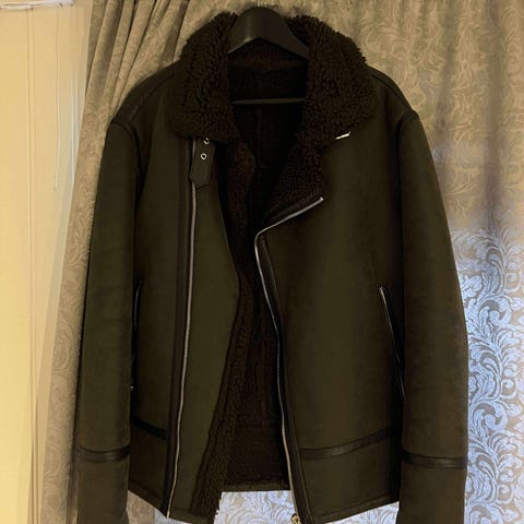 Zara jakke i størrelse M, laget av polyester. Jakken har svart farge med rutemønster i beige og brunt. Egnet som yttertøy for menn.