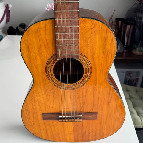 Selger en sjarmerende vintage 3/4 Leif Hansson-gitar, produsert i Oslo på 50- eller 60-tallet. Dette er et flott lite stykke norsk musikkhistorie og et ettertraktet samleobjekt.