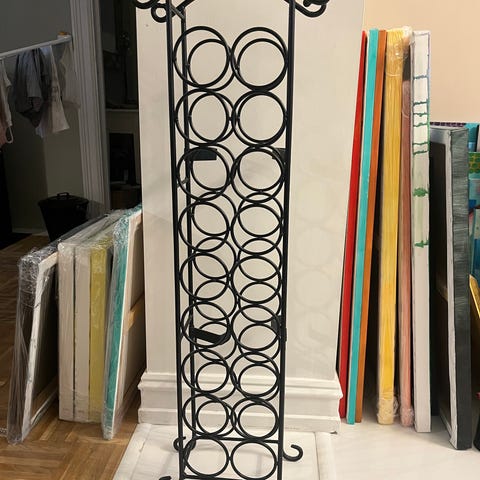 Selger et solid og praktisk vinstativ i sort smijern-stil.